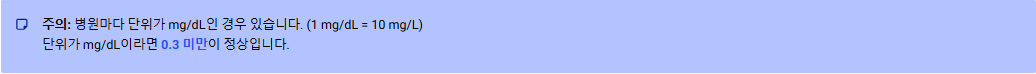 ⚠️ 주의: 병원마다 단위가 mg/dL인 경우가 있습니다. (1 mg/dL = 10 mg/L)
