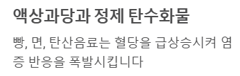 - 액상과당과 정제 탄수화물: 빵, 면, 탄산음료는 혈당을 스파이크 시켜 염증 반응을 폭발시킵니다.