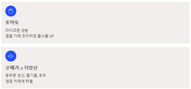 - 토마토: 붉은색의 '라이코펜' 성분은 열을 가해 조리했을 때 흡수율이 높아지며, 강력한 항염 효과를 냅니다.