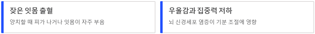 - 우울감과 집중력 저하: 뇌 신경세포에 염증이 생기면 기분 조절에도 영향을 줌.