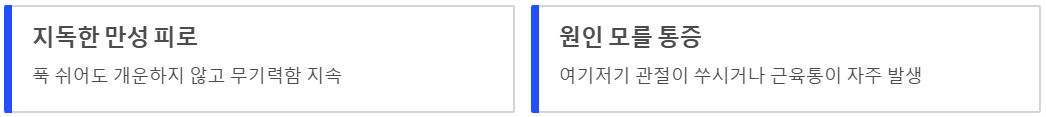 - 원인 모를 통증: 여기저기 관절이 쑤시거나 근육통이 자주 발생.
