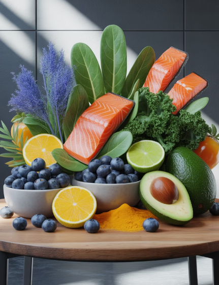 - 오메가-3 지방산: 등푸른 생선(고등어), 들기름, 호두는 염증 억제에 탁월합니다.