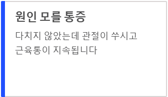 - 원인 모를 통증: 다치지 않았는데도 관절이 쑤시거나 근육통이 지속됩니다.