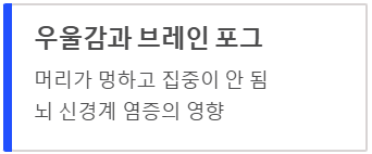 - 우울감과 뇌무(Brain Fog): 머리가 멍하고 집중이 안 됩니다. 뇌 신경계에 염증이 영향을 미치면 우울증 위험도 높아집니다.