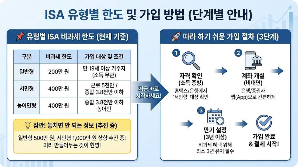 #ISA비과세한도 #ISA계좌 #개인종합자산관리계좌 #ISA서민형 #ISA일반형 #세금절약 #비과세통장 #절세방법 #재테크기초 #ISA가입조건