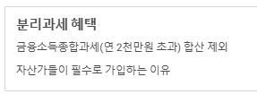 - 가입 제한: 직전 3년 중 1회라도 금융소득종합과세 대상자였다면 가입이 불가능합니다.