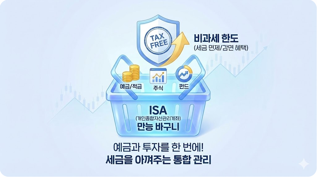 ISA는 '세금 아껴주는 만능 바구니'라고 생각하면 이해가 빠릅니다. 예금, 적금, 주식, 펀드 등 다양한 금융 상품을 이 바구니(통장) 하나에 담아 관리하는 것입니다.