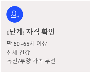 - 나이: 올해 나이가 만 60세 ~ 65세 이상인 시니어 (유형별 상이)