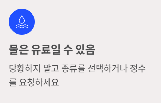- 물(Water)은 유료일 수 있으니, 당황하지 말고 종류를 선택하자.