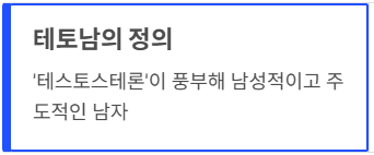 테토남은 남성 호르몬인 '테스토스테론(Testosterone)'과 '남자'의 합성어입니다.