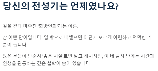 오늘 하루, 당신만의 가장 예쁜 꽃을 피우시길 응원합니다.