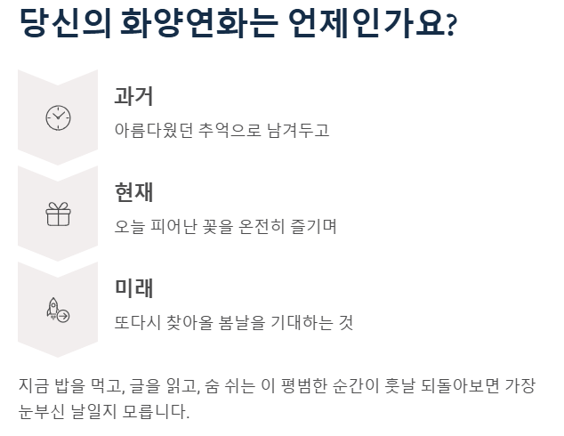 - 현재: 오늘 피어난 꽃을 온전히 즐기며