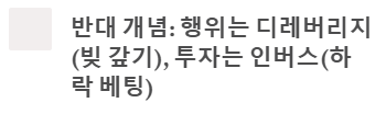 - 레버리지의 반대 행위는 '디레버리지(빚 갚기)', 반대 투자는 '인버스'다.
