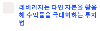 쉽게 말해, 내 돈 100%로 투자하는 게 아니라 남의 돈을 빌려서 투자 판돈(규모)을 키우는 것입니다.