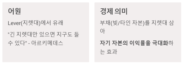 "타인의 자본(빚)을 지렛대 삼아, 자기 자본의 이익률을 극대화하는 효과"
