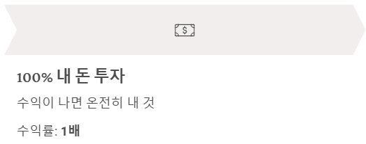 - 내 돈 100% 투자: 수익이 나면 온전히 내 것 (수익률 1배)