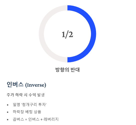 ⚠️ 주의: 흔히 '곱버스'라고 부르는 상품은 '인버스(하락 배팅)'에 '2배 레버리지'를 합친 것입니다.