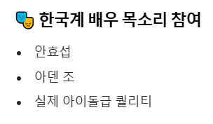 특히 안효섭, 아덴 조 등 한국계 배우들이 목소리 연기에 참여해서 화제가 되기도 했었죠.