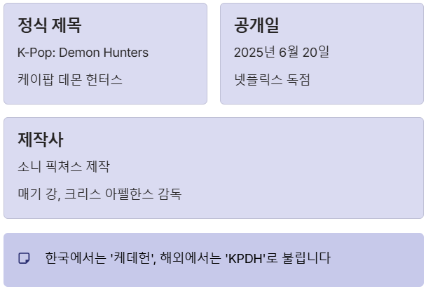 - 제목: 케이팝 데몬 헌터스 (K-Pop: Demon Hunters)
