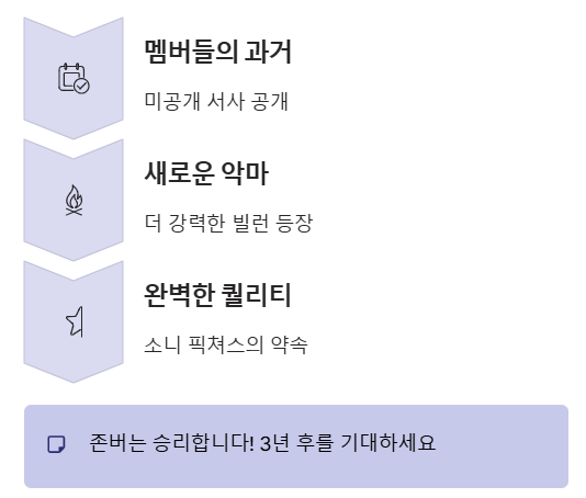 - 내용: 1편에서 다루지 못했던 멤버들의 과거 서사와 더 강력해진 새로운 악마와의 대결이 그려질 예정이라고 합니다.