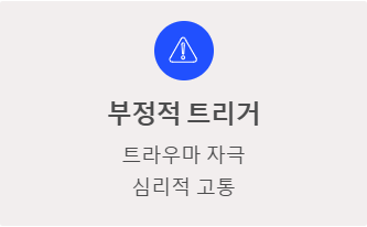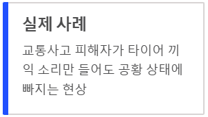 - 예시: 교통사고 피해자가 '타이어가 끼익 끌리는 소리(트리거)'만 들어도 식은땀을 흘리며 공황 상태에 빠지는 것.