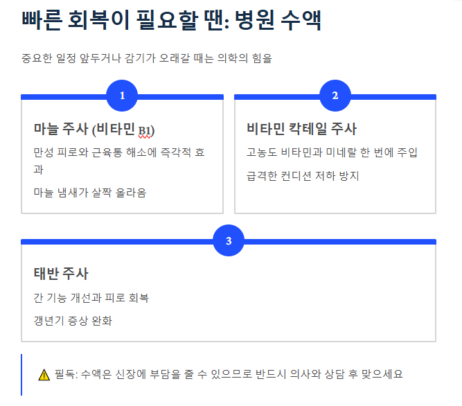 3. 빠른 회복이 필요할 땐: 병원 수액 (링거)