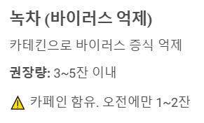 10. 녹차 🍵 (바이러스 억제)