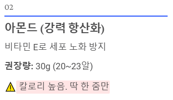- ⚠️ 주의사항: 칼로리가 높습니다. 몸에 좋다고 한 봉지 다 드시면 체중이 증가할 수 있으니 딱 한 줌만!