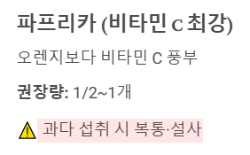 - 하루 권장량: 1/2개 ~ 1개. (반 개만 먹어도 1일 비타민 C 권장량 충족)