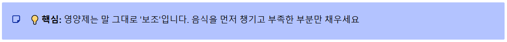 💡 핵심: 영양제는 말 그대로 '보조'입니다. 위에서 소개한 음식을 먼저 챙기고, 부족한 부분만 채우세요.