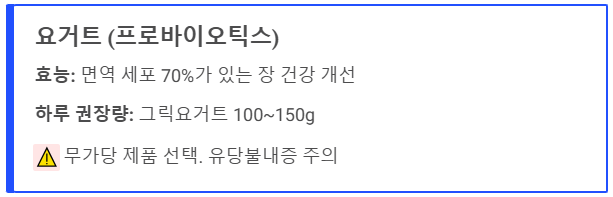 - ⚠️ 주의사항: 시중 제품은 당분이 높을 수 있어요. '무가당' 제품을 고르고, 유당불내증이 있다면 섭취에 주의하세요.