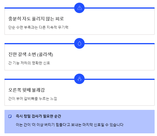 "단순한 피로감은 수면 부족일 수 있습니다. 하지만 충분히 잤는데도 피로가 풀리지 않고, 소변 색이 진한 갈색(콜라색)을 띠거나 오른쪽 윗배가 불쾌하다면 즉시 정밀 검사가 필요합니다. 이는 간이 '더 이상 버티기 힘들다'고 보내는 마지막 신호일 수 있습니다."