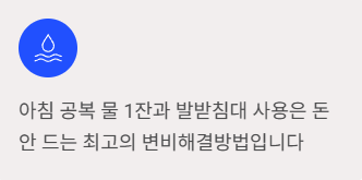 - 아침 공복 물 1잔과 발받침대 사용은 돈 안 드는 최고의 변비해결방법입니다.