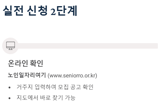- 온라인 확인: '노인일자리여기(www.seniorro.or.kr)' 사이트에 접속하여 거주지(시/구)를 입력하면 현재 모집 중인 공고를 지도에서 바로 확인할 수 있습니다.