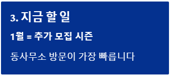 - 지금 할 일: 1월은 추가 모집 및 '대기자 등록' 시즌, 동사무소 방문이 가장 빠름.