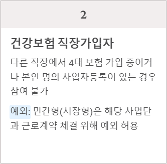 - 단, 민간형(시장형) 일자리는 해당 사업단과 근로계약을 맺기 위해 가입하는 것이므로 예외적으로 허용됩니다.