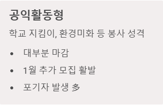 | 추가 모집 | 1월~3월 (결원 발생 시) | 수시 (기관 사정에 따름) | 상시 (일자리 있을 때마다) |