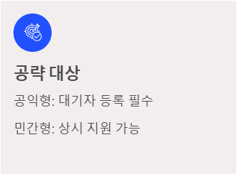 - 공략 대상: 공익형은 '대기자 등록' 필수, 민간형(시장형)은 상시 지원 가능.