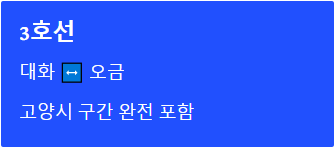- 3호선: 전 구간 (대화~오금) ※ 고양시 구간 완전 포함