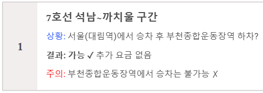 - 상황: 서울(대림역 등)에서 승차 후 부천종합운동장역(경기)에서 하차?
