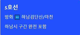 - 5호선: 전 구간 (방화~하남검단산/마천) ※ 하남시 구간 완전 포함