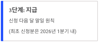 - 단, 이번 최초 신청분은 사업 일정에 따라 '26년 1분기 내에 지급될 수 있습니다.