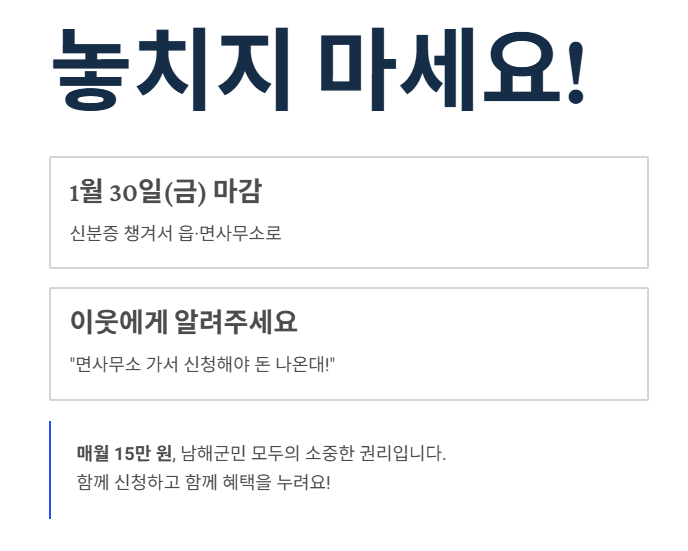 📢 남해군민 여러분, 1월 30일까지 꼭 면사무소에 다녀오세요!