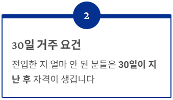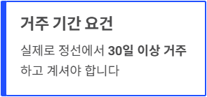 - 주의: 전입한 지 얼마 안 된 분들은 정선에 오신 지 30일이 지난 시점부터 자격이 생깁니다.