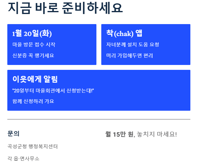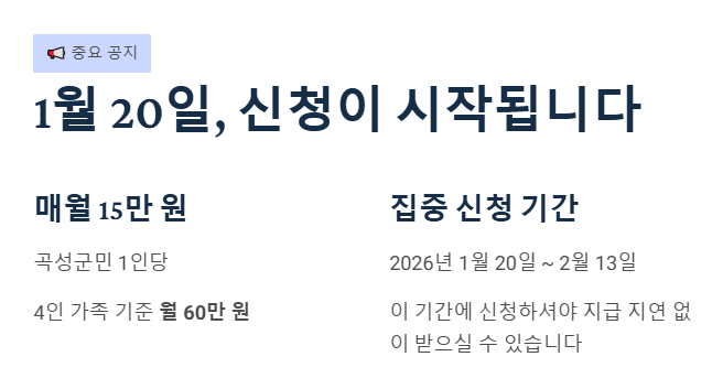 📢 곡성군민 여러분, 1월 20일부터 신청이 시작됩니다!