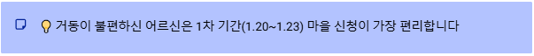 거동이 불편하신 어르신들은 1차 기간(1.20.~1.23.)에 마을에서 신청하시는 것이 가장 편합니다.