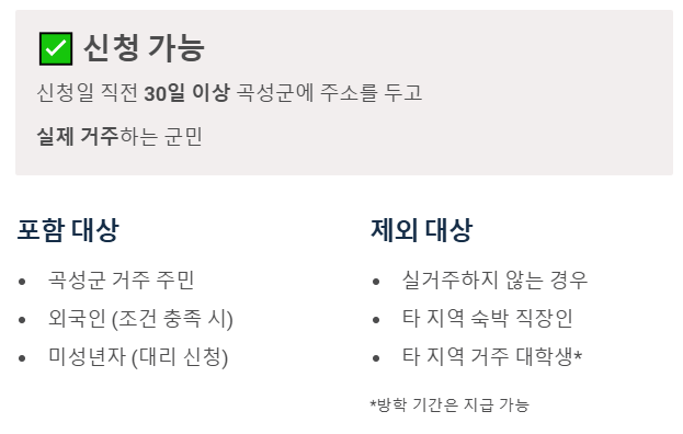 "주소만 곡성에 있으면 다 받나요?" 아닙니다. 아래 경우는 제외됩니다.