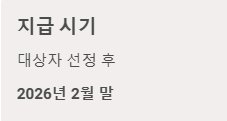 - 지급 시기: 대상자 선정 후 2026년 2월 말 (잠정) 지급 예정