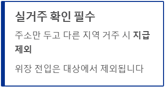 주소만 두고 실제로는 다른 지역에 사는 경우(위장 전입) 지급 대상에서 제외됩니다.
