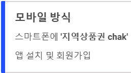 - 모바일: 스마트폰에 '지역상품권 chak' 앱 회원가입 완료.